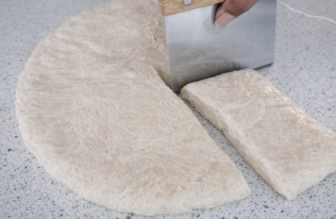 5. Ndaje brumin në 10–12 pjesë të barabarta, varësisht sa të mëdha i dëshiron bukët.