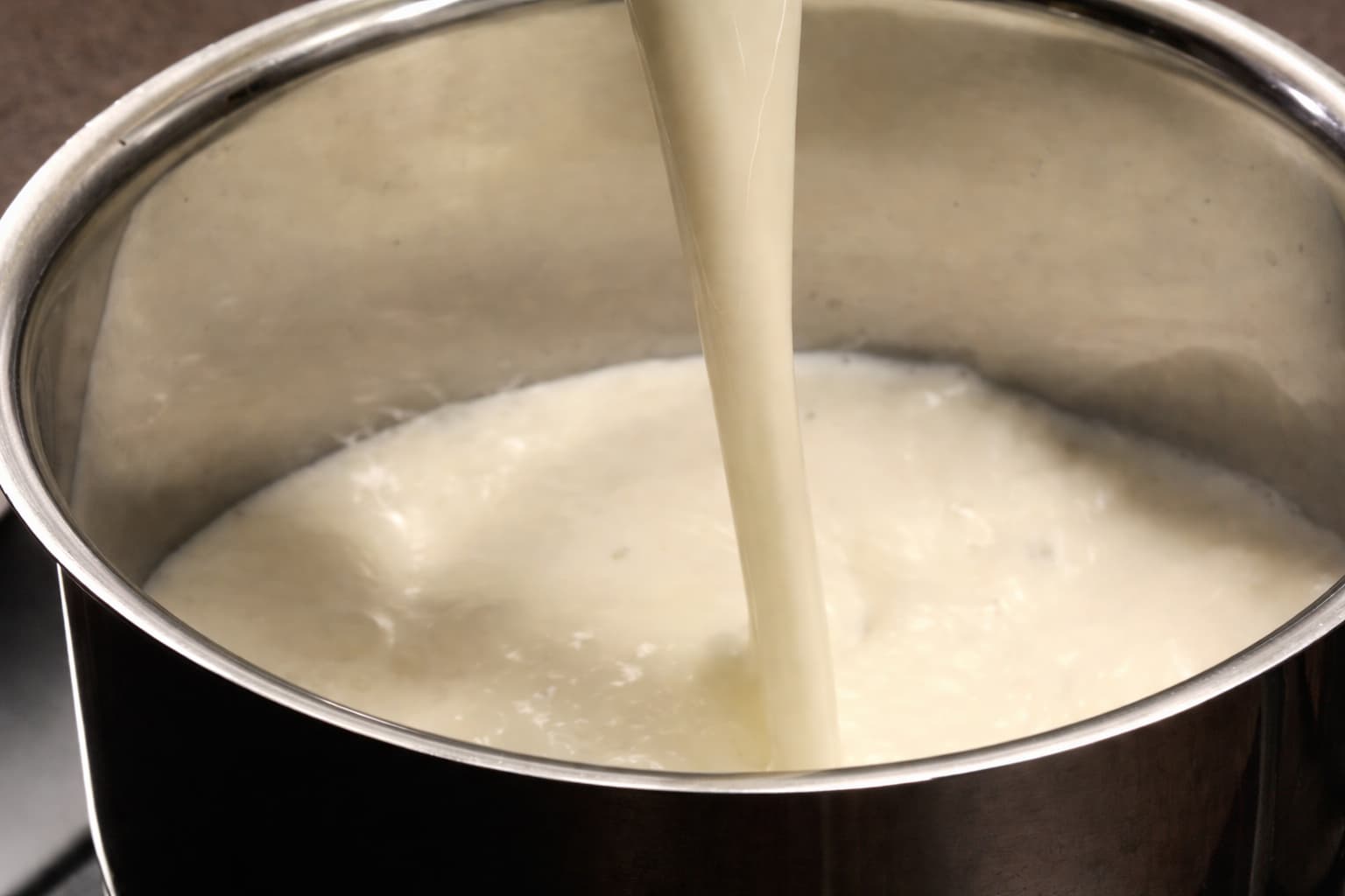 Ngroh qumështin në një tenxhere në temperaturë mesatare, pa e lënë të vlojë.