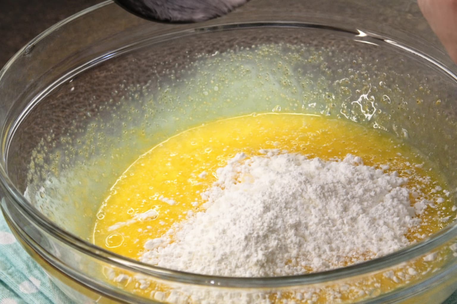 Nëse përdor sheqer vanilje, shtoje në këtë fazë dhe përzieje bashkë me vezët.