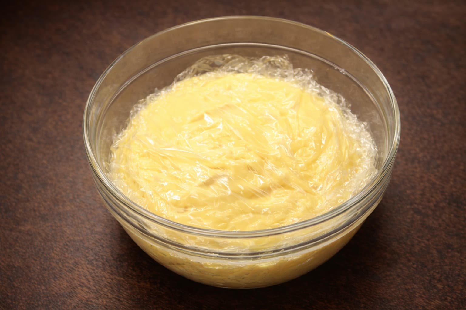 Hidhe në një tas dhe mbuloje me qese plastike në sipërfaqe. Lëre të ftohet plotësisht.