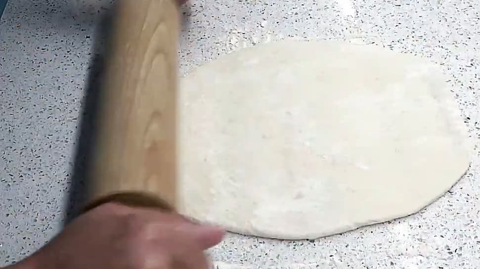 Hedh pak miell në tavolinë dhe hape çdo top brumi me okllai, një nga një, në formë ovale.