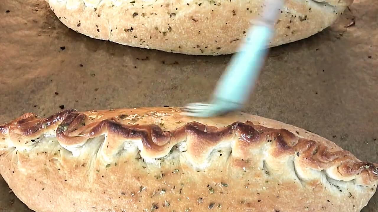 • Shtyp mirë skajet që të mos futet ajër brenda – kështu calzone ruan formën më mirë.