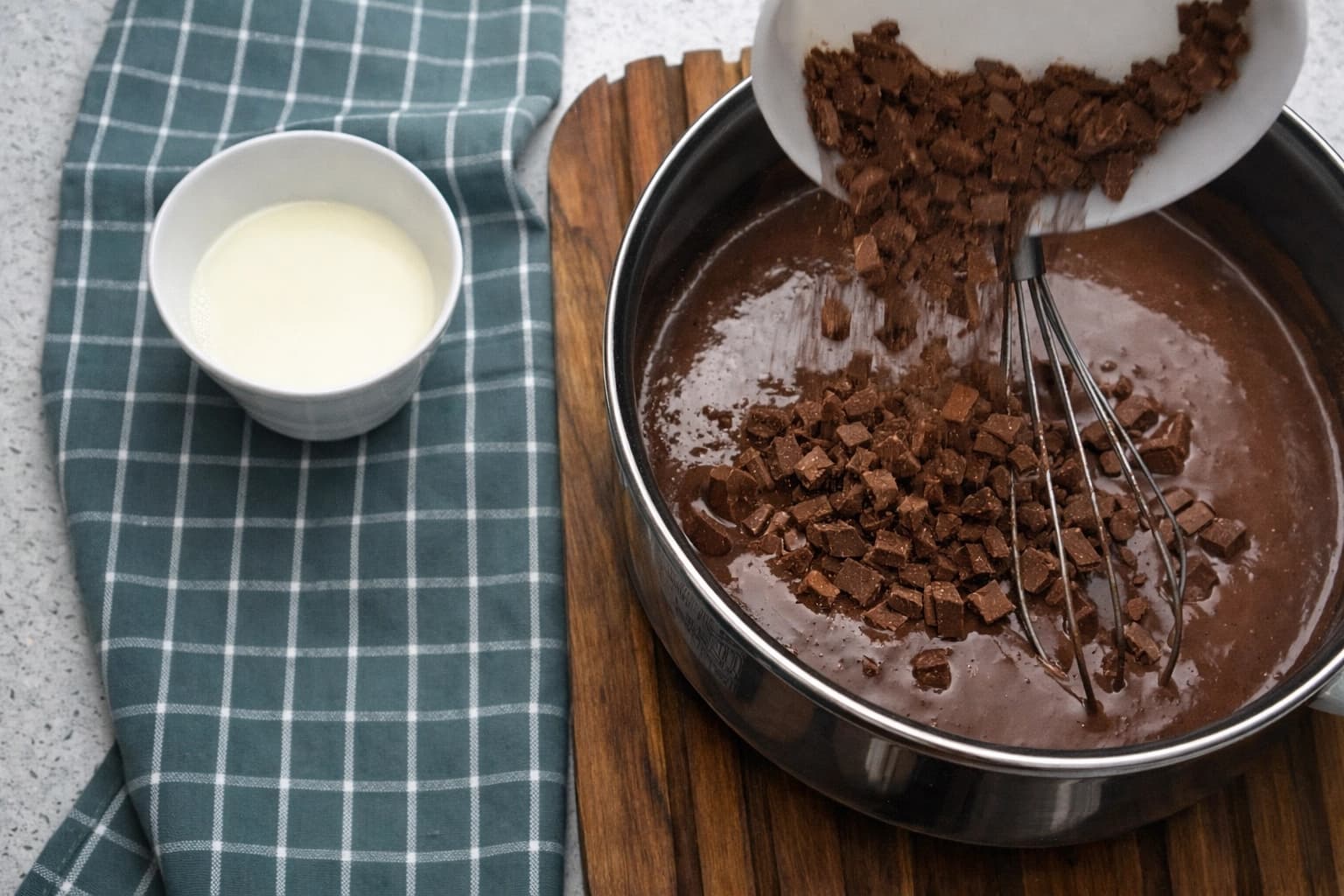 Shto çokollatën e copëtuar dhe lëre të shkrihet.