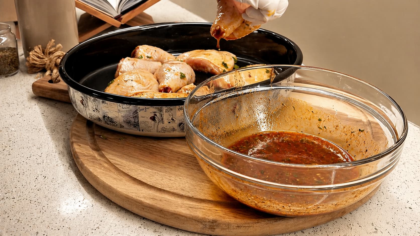 - Për rezultat më të lëngshëm dhe me më shumë shije, mund ta lini pulën në marinadë për 1–2 orë para pjekjes.