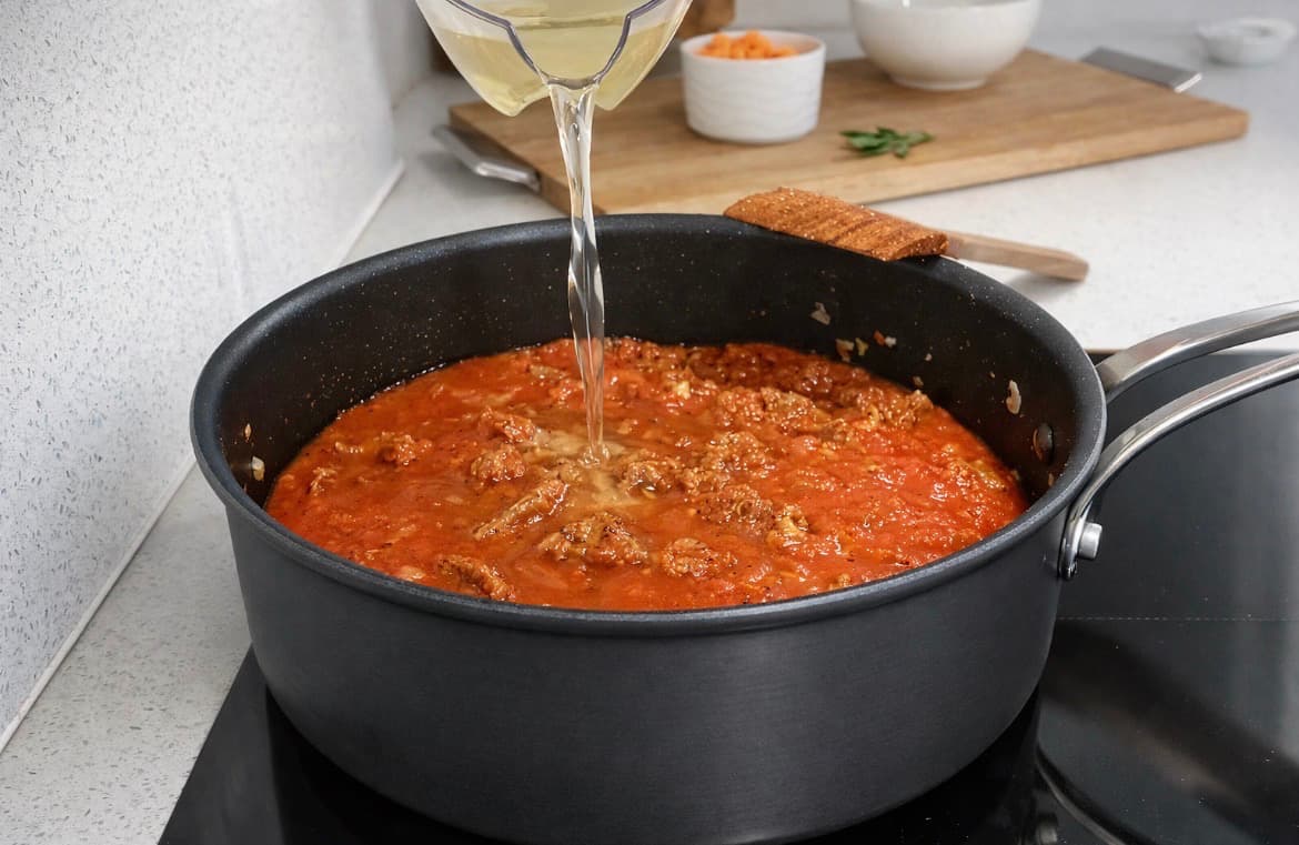 Lëre të vlojë, pastaj vendos kapakun dhe ziej në zjarr të ulët për rreth 2 orë. Përzieje herë pas here. Nëse duhet, shto pak më shumë lëng.